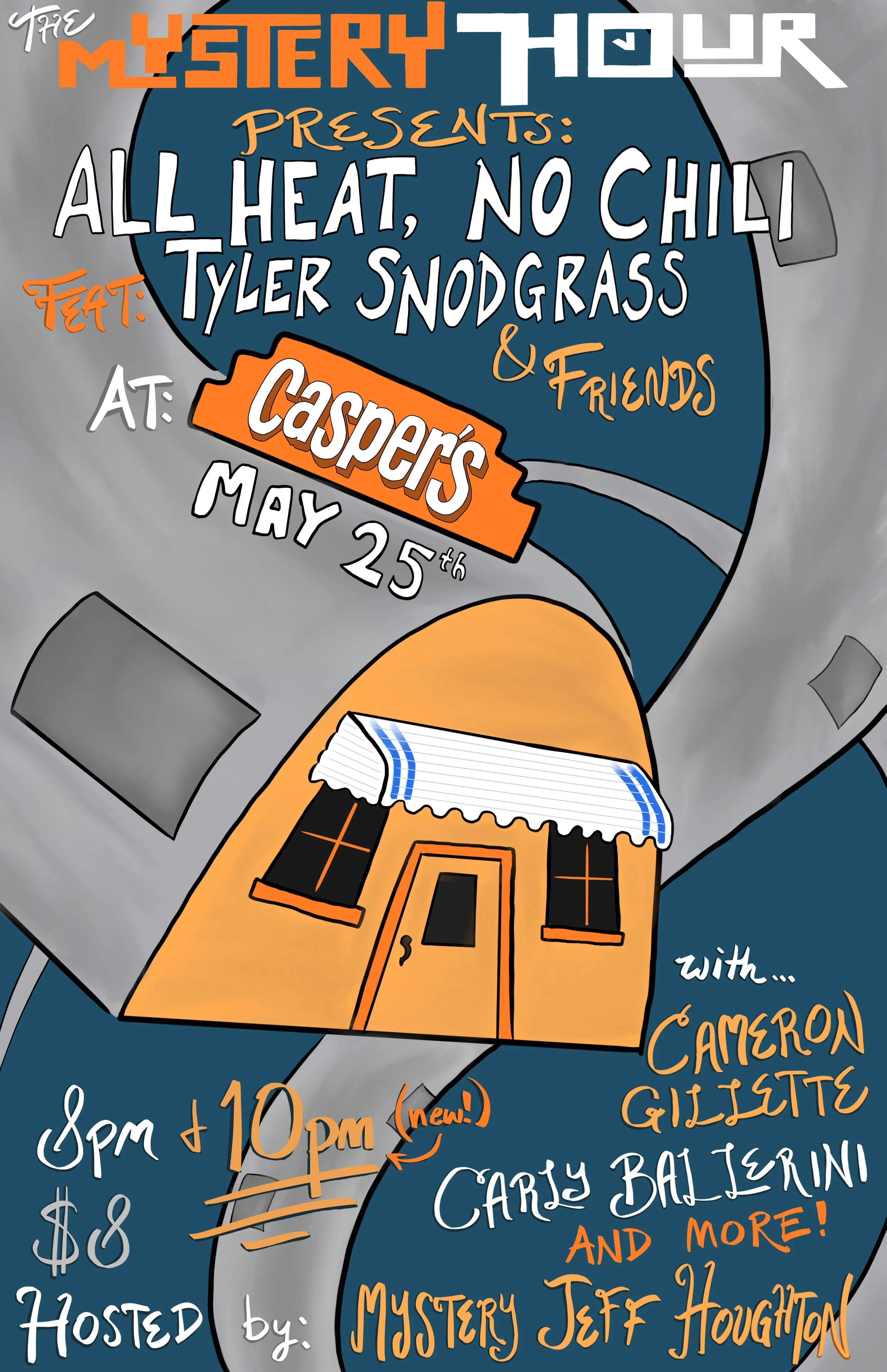 The Emmy Award-winning talk show, The Mystery Hour, is setting up a special standup show on Thursday May 25th, and you have two chances to see it! An 8pm and 9:30pm show will be happening at Casper's Chili in Downtown Springfield, but tickets are going fast so reserve online or email snodgrasscomic@gmail.com to see if there are walk-up tickets still available! You wont want to miss this show!